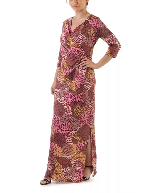 24seven Comfort Apparel Women's Plus Size Faux Wrap Side Slit Maxi Dress