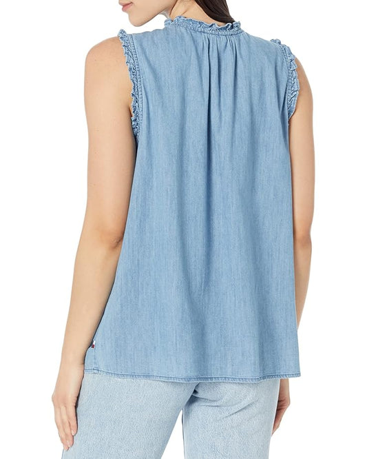 Tommy Hilfiger Women's Sleeveless Ruffle Chambray Blouse J2AMC046