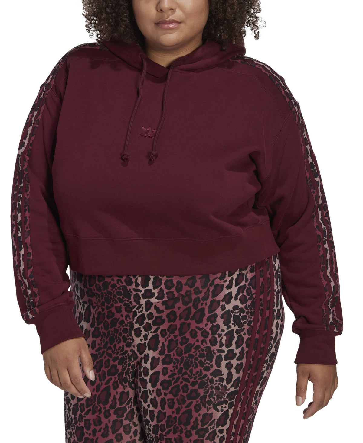 Keep it simple yet chic. This adidas plus size hoodie helps you stand out in the best way possible with an elevated design. Leopard print peeks out on the hood lining and takes over the 3-Stripes down the sleeves. Pair it with anything in your closet to add fun flair.