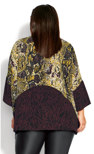 Turn up the glamour in the Sylvie spliced top. Dynamic and bold, this style features a removable matching scarf and elbow-length dolman sleeves.