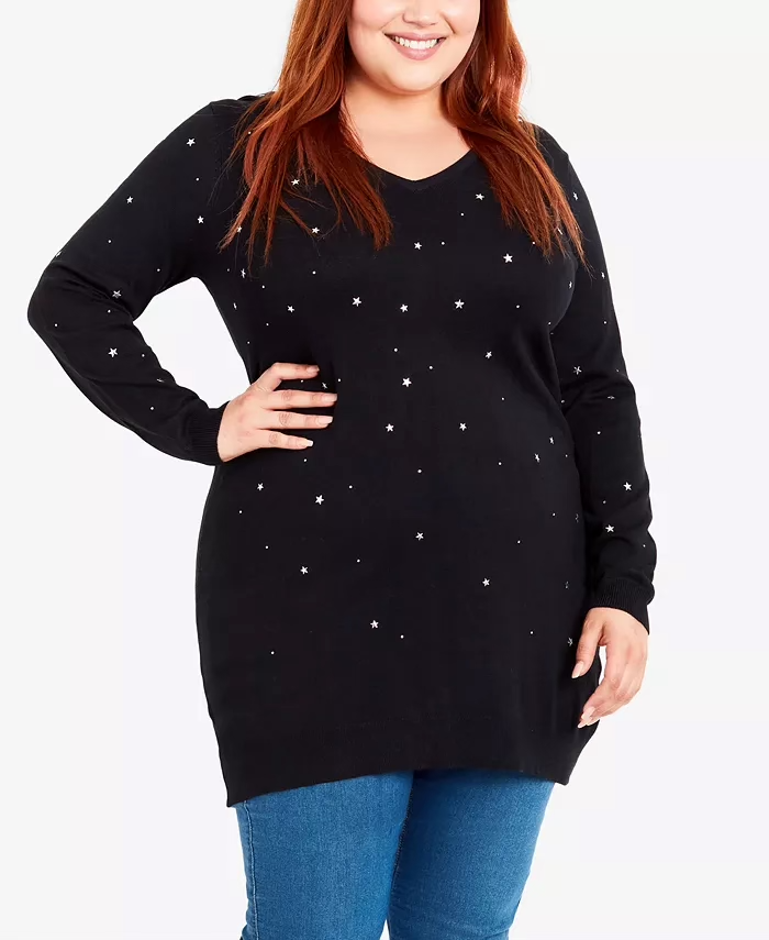 Go for playful style this season in our star jumper, offering a hue for versatility. Long sleeve coverage will keep you warm on cooler days while a V-neckline adds classic style.
