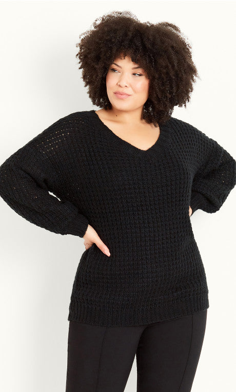 Avenue Women's Waffle Knit V-Neck Jumper