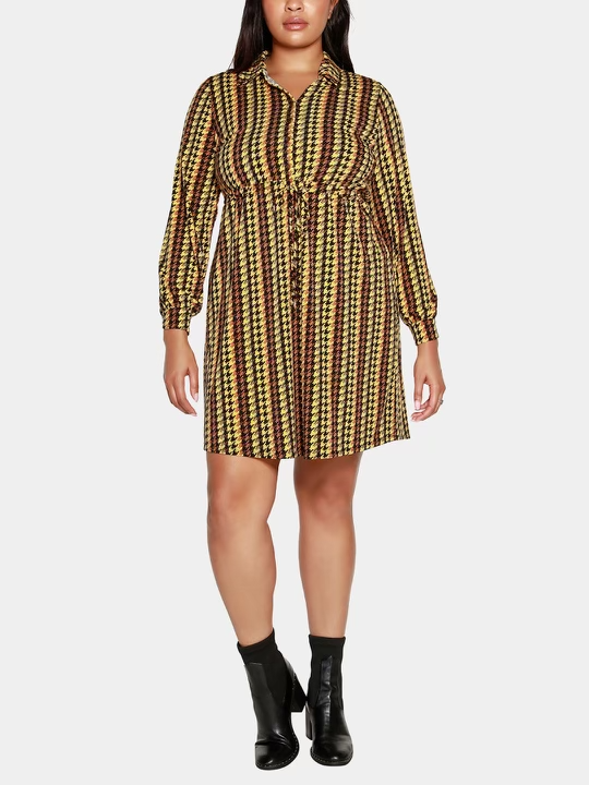 Belldini Black Label Women's Houndstooth Long Sleeve Shirt Dress