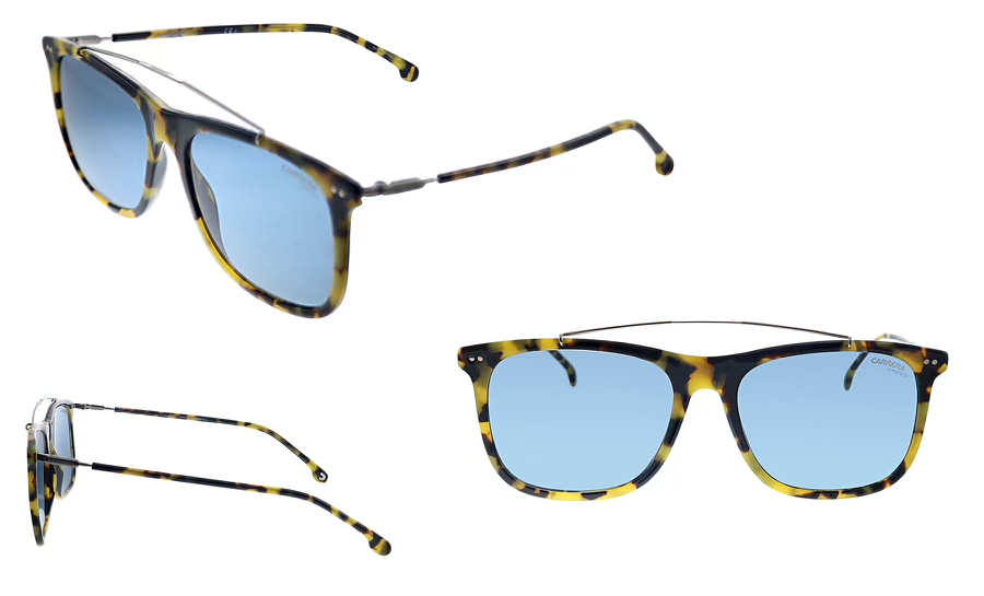 Carrera CA Car a150 Tortoise Plastic Rectangle Sunglasses Blue Lens. Made from Plastic and CR-39 , these Carrera 150/S sunglasses are durable and trendy. The Blue lenses matches well with the Tortoise frames, a great combination that will keep you looking chic and stylish!
