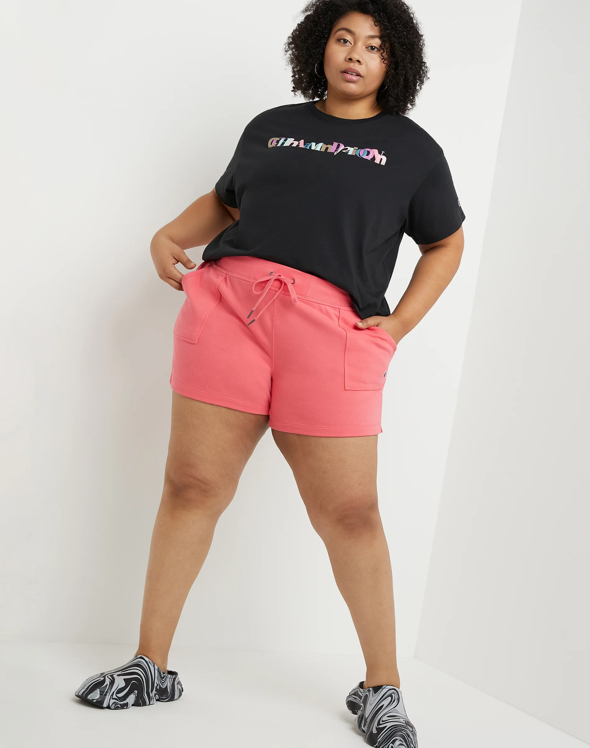 Our lightweight, plus-size women's sweat shorts get you from track to kick back in a breeze. The standard-fit style is made with lightweight French terry fabric that keeps you comfortable without the heavyweight bulk, making it a versatile choice. Adjust the ribbed waistband with the drawcords for a fit that keeps you feeling good. These shorts for women ensure you can always carry the essentials close with two front pockets and a single back pocket. Finished with the iconic C logo, these shorts are the perfect warm-weather go-to.
