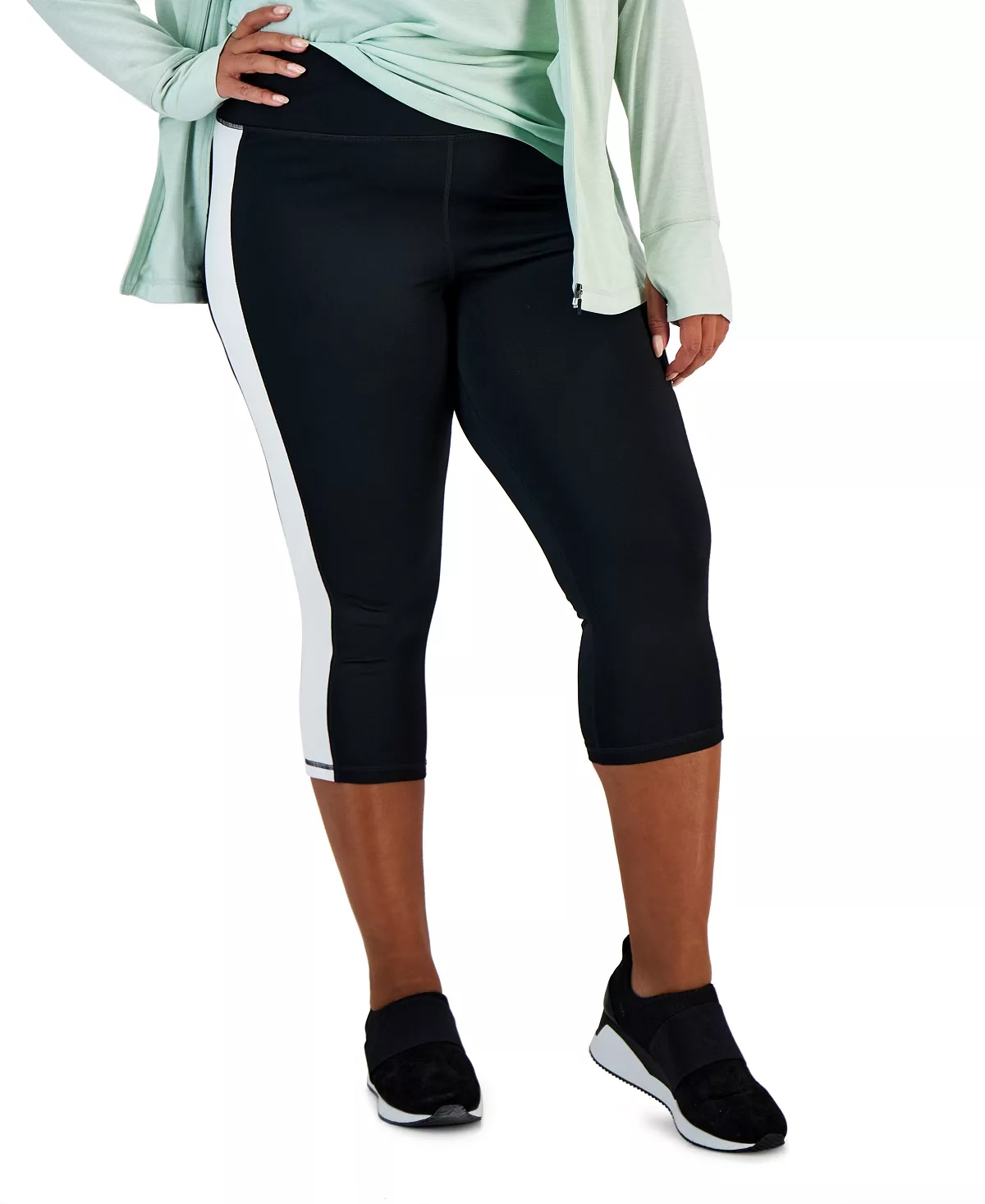 ID Ideology Women's Plus Size Essentials Colorblocked Cropped Leggings