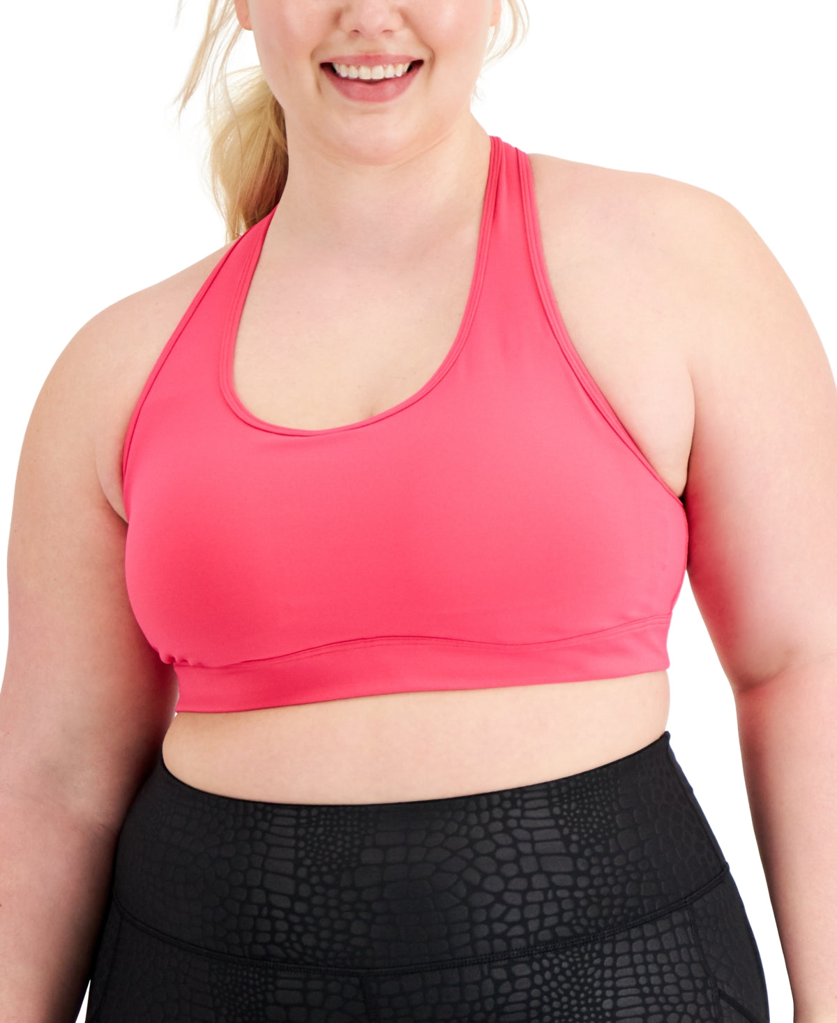 Update your workout wardrobe with this medium impact sports bra from Ideology Performance, a plus size pick designed with removable pads and moisture-wicking properties.