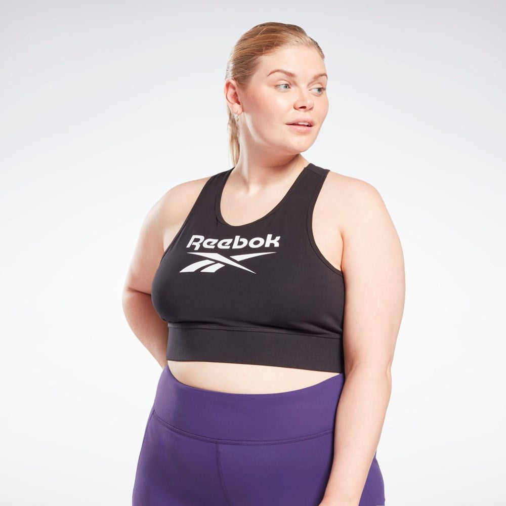 Represent Reebok every day of the week. You don't need to be headed to the gym to appreciate this sports bra. Stretchy cotton is soft, comfortable and provides light support for all the things you do. The racerback gives you plenty of room to move. A bold Vector logo keeps it sporty and rooted in heritage.
