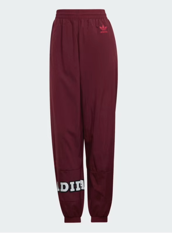 A heritage athletic look with a little '90s influence. These track pants bring lots of logo love to your daily rotation, and their relaxed fit adds casual style to any outfit. Multiple rubber-print Trefoils rep your authentic sport attitude, and a puff-print adidas logo around one leg livens up the party. Soft mesh inside keeps them comfy. This product is made with Primegreen, a series of high-performance recycled materials. SIZE: SMALL COLOR: VICTORY CRIMSON